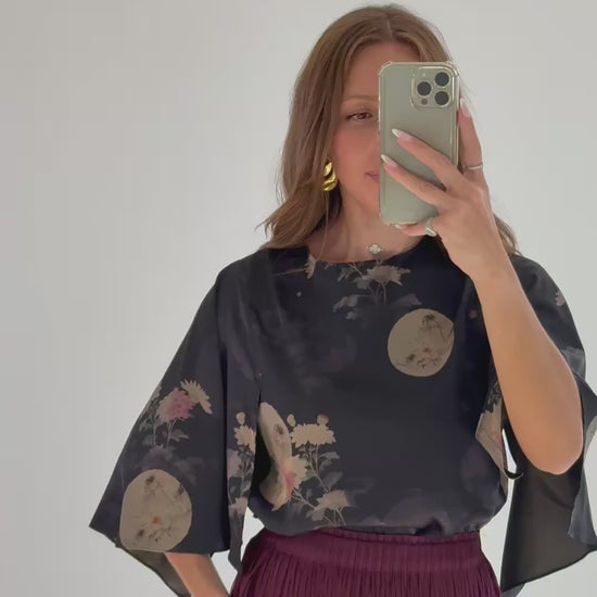 - ANONYME Maglia girocollo, maniche a campana, bottoncino di chiusura sul retro
