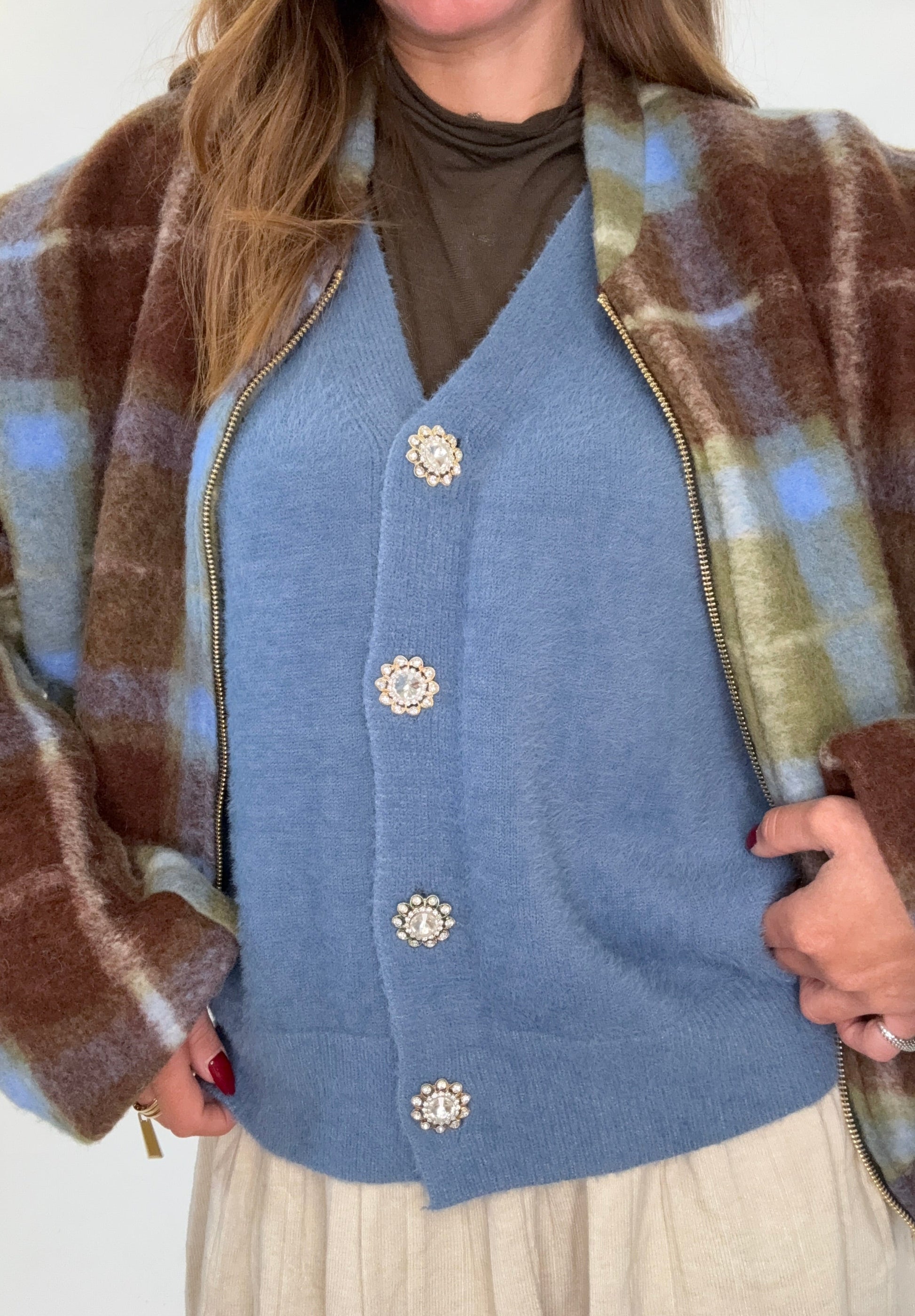 - Cardigan bouclè con bottoni gioiello di chiusura
