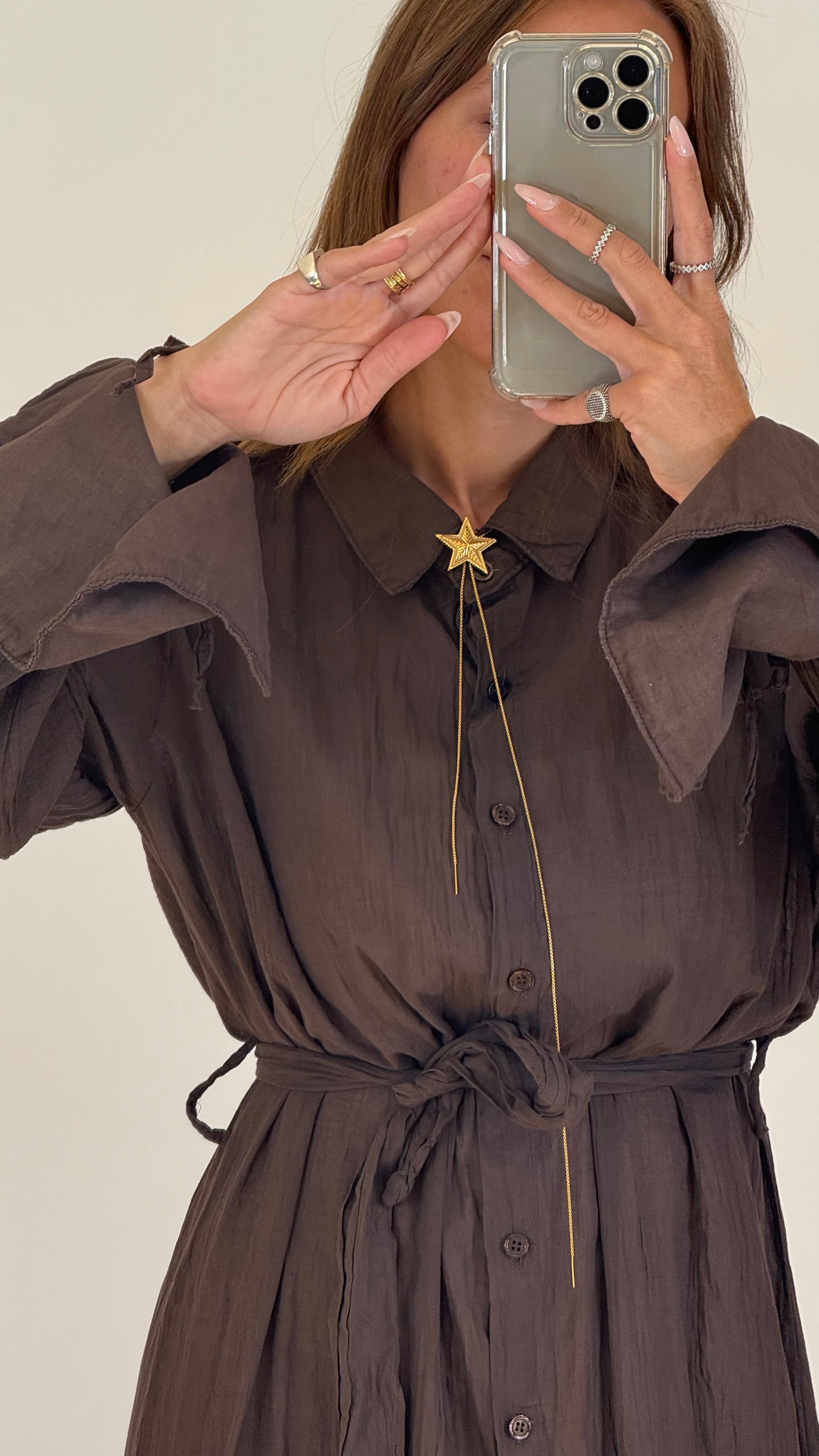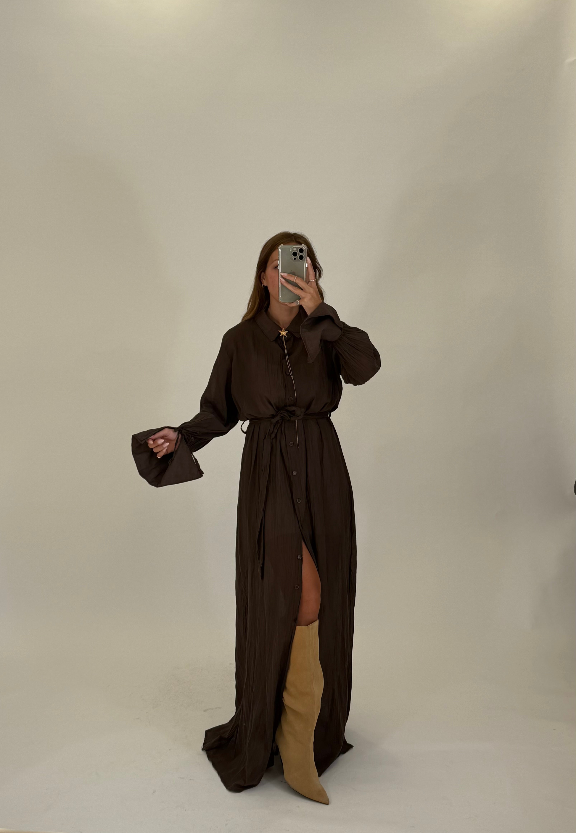 - Abito Chemisier Made in Italy, bottoni di chiusura frontali, fusciacca, sottoveste