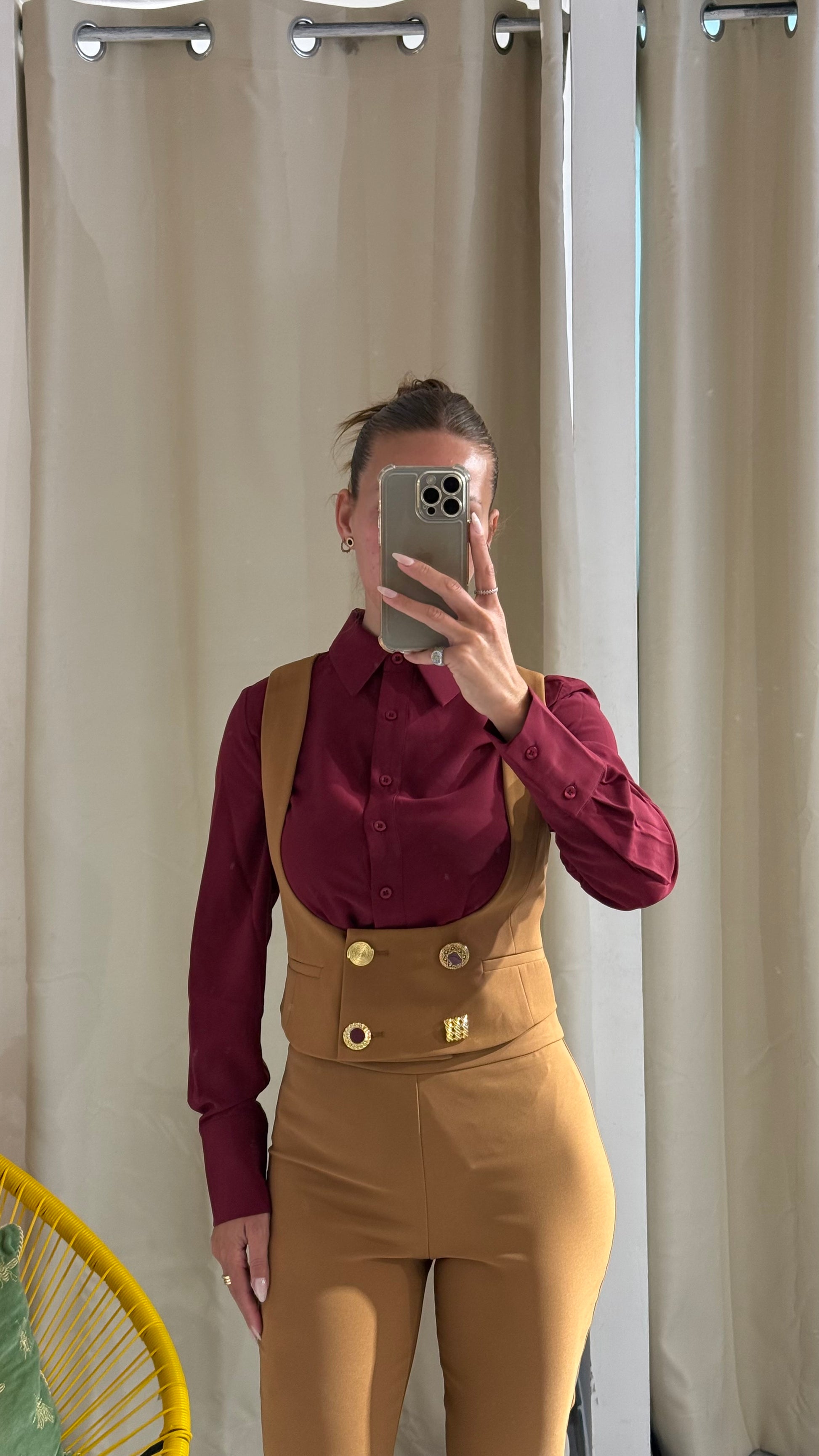 - KOSTUMN1 MADE IN ITALY. Panciotto con martingala sul retro, bottoni gioiello