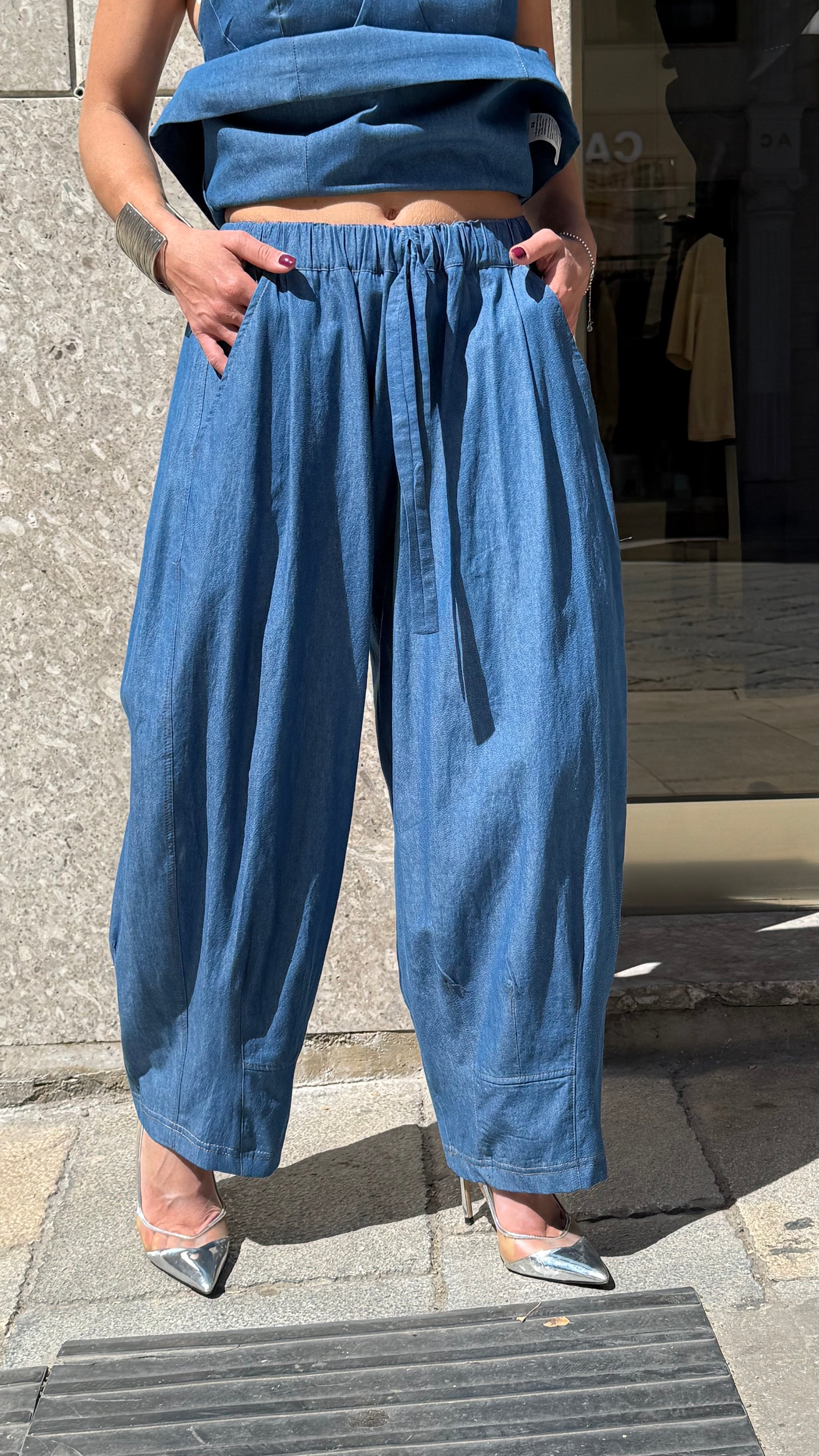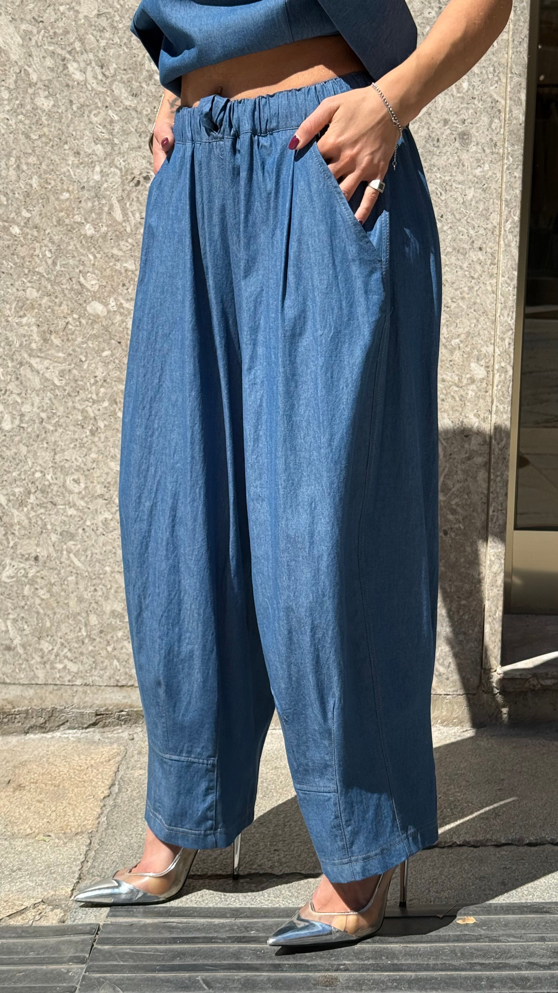 - KOSTUMN1 Made in Italy Pantalone vestibilità ballon, elastico in vita regolabile, tasche laterali