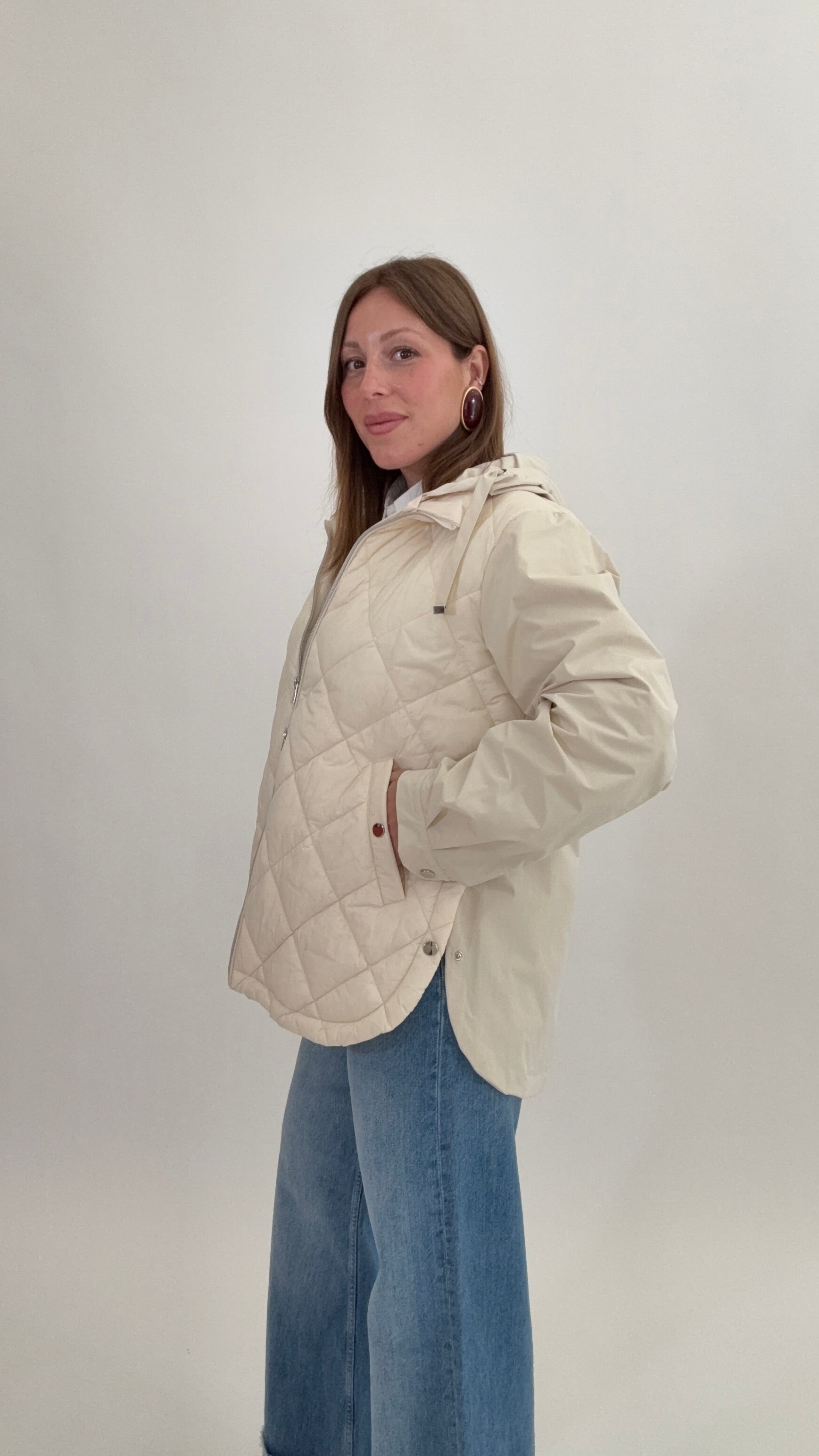 - PLEASE Made in Italy Piumino trapuntato davanti, maniche e retro liscio, cappuccio removibile, doppio cursore, apertura laterale con bottoni, vestibilità leggermente over