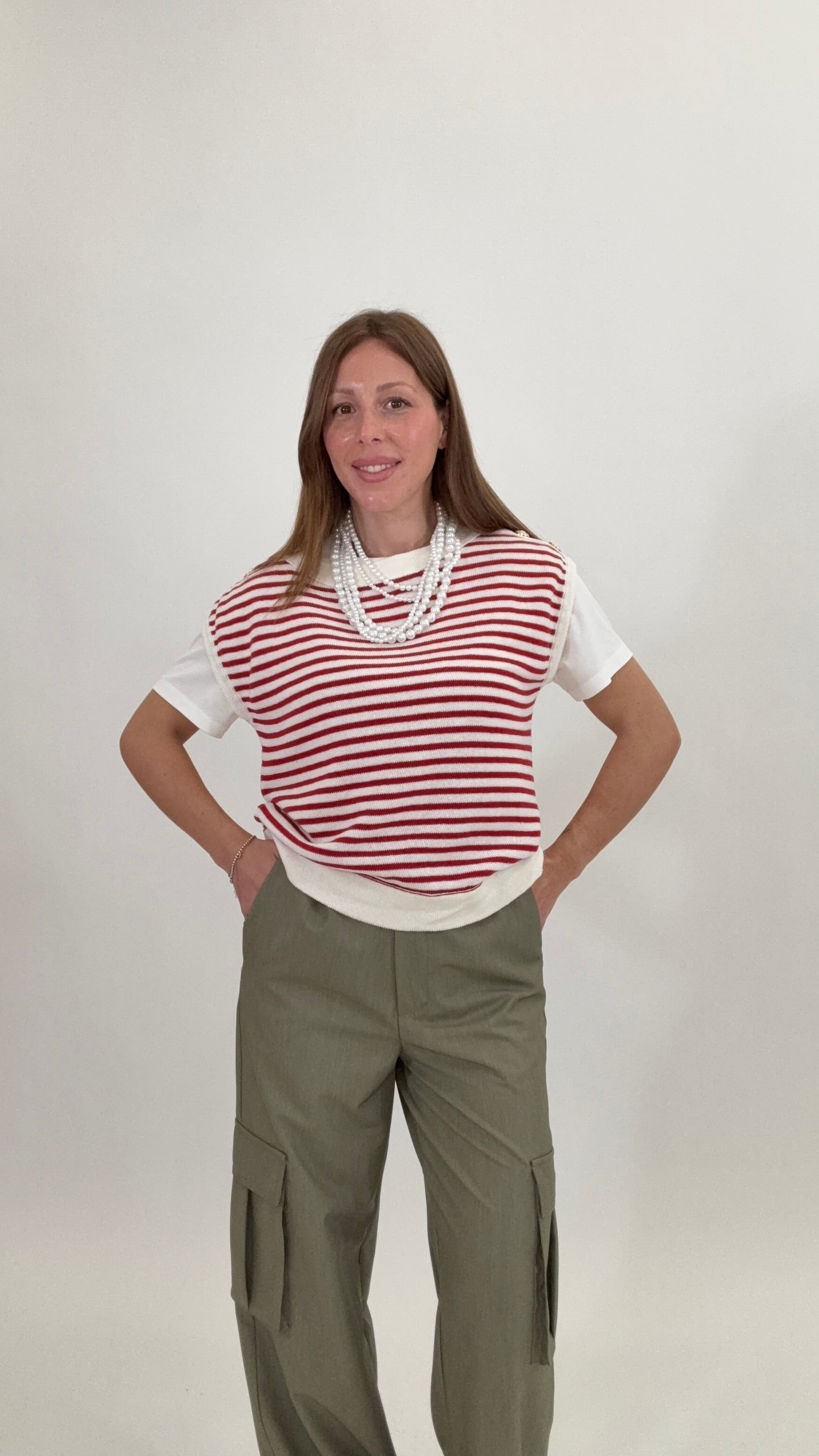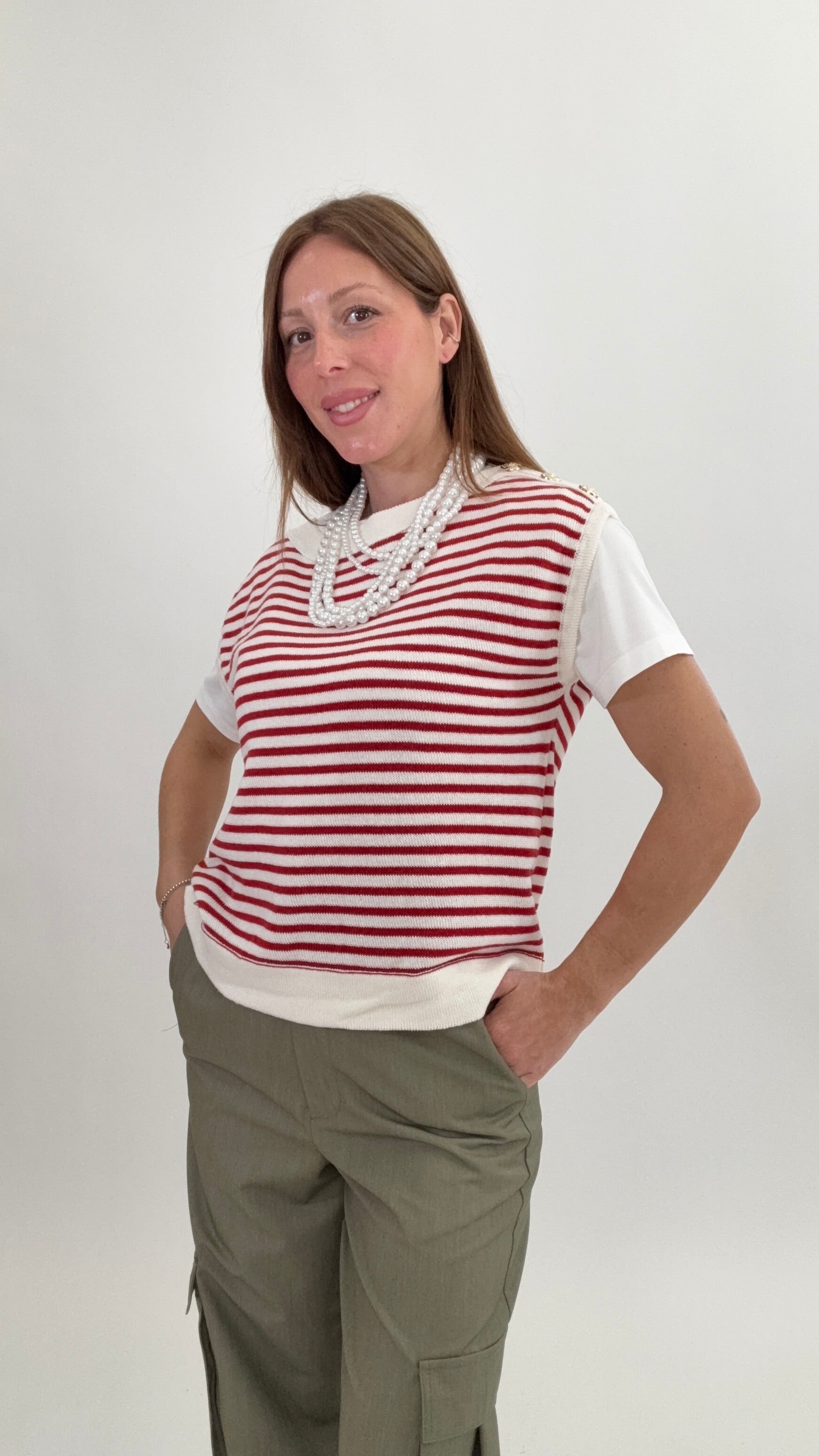 PLEASE Gilet Mali Panna/Rosso
