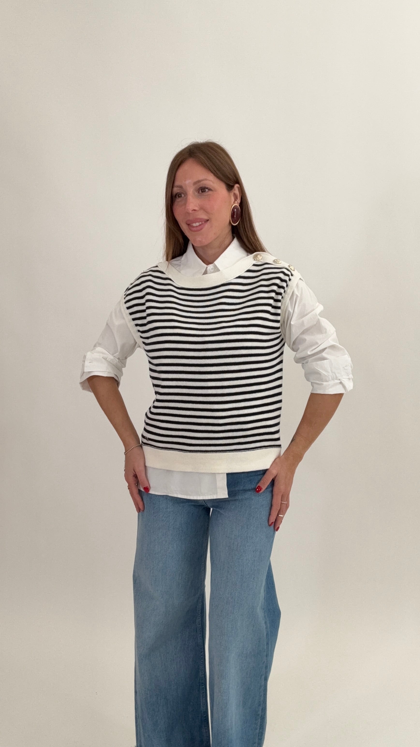 - PLEASE Made in Italy Gilet con bottoni sulle spalle, vestibilità morbida